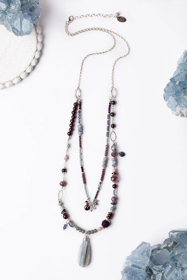 Horizon 22.5-24.5" Garnet, Crystal With Blue Opal Multistran