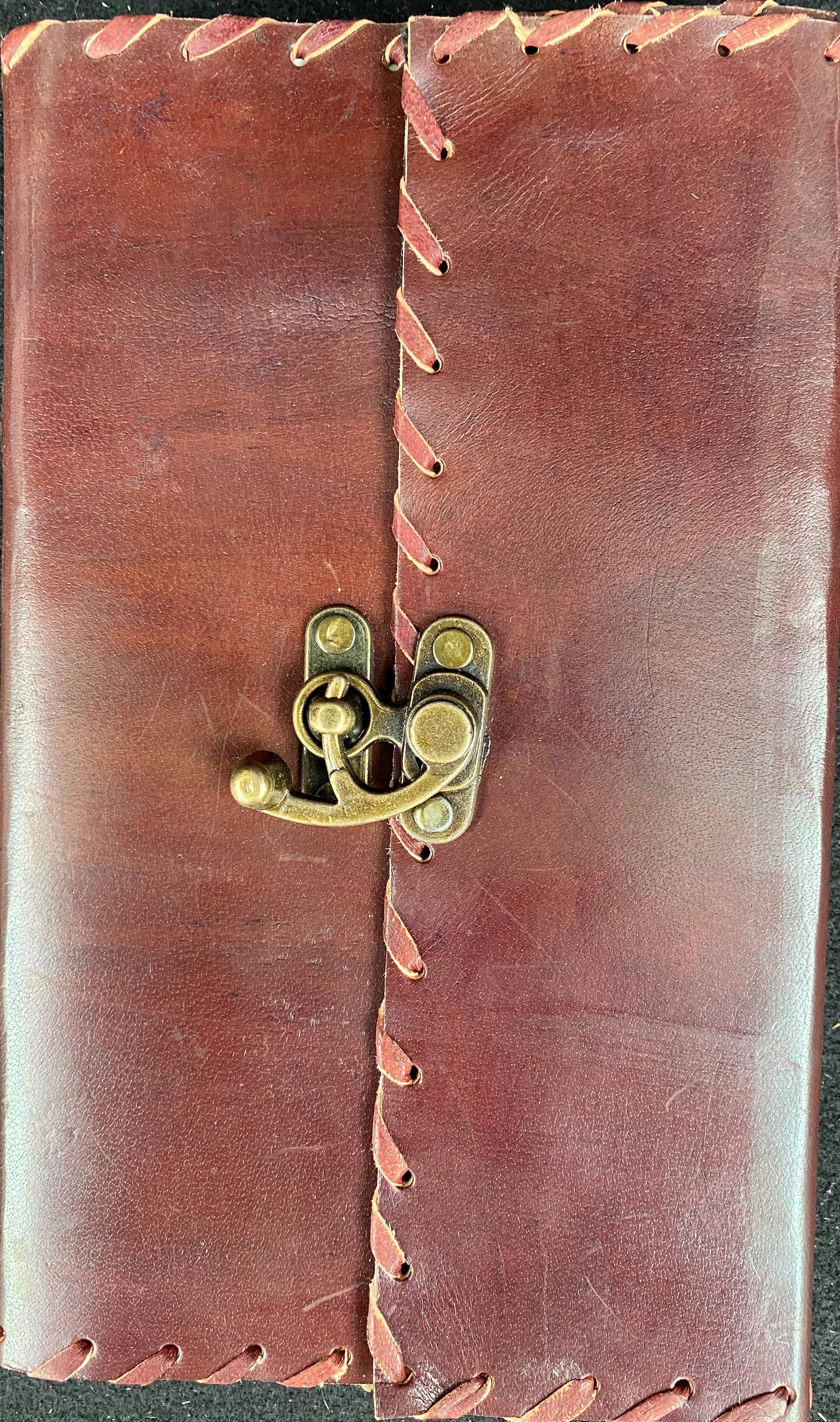 This is the 5.5 x 9 Classic journal. It has stitching all along the sides but is otherwise a simple, yet elegant design. It has approximately 200 pages of recycled cotton paper, is unlined, and has a C Lock closure.