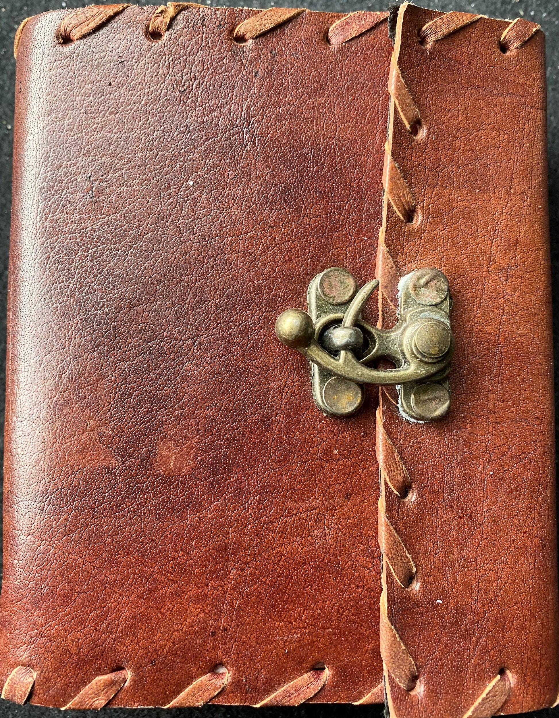 This is the 4 x 5 Classic journal. It has stitching all along the sides but is otherwise a simple, yet elegant design. It has approximately 200 pages of recycled cotton paper, is unlined, and has a C Lock closure. This is one of our earliest designs and is still very popular.