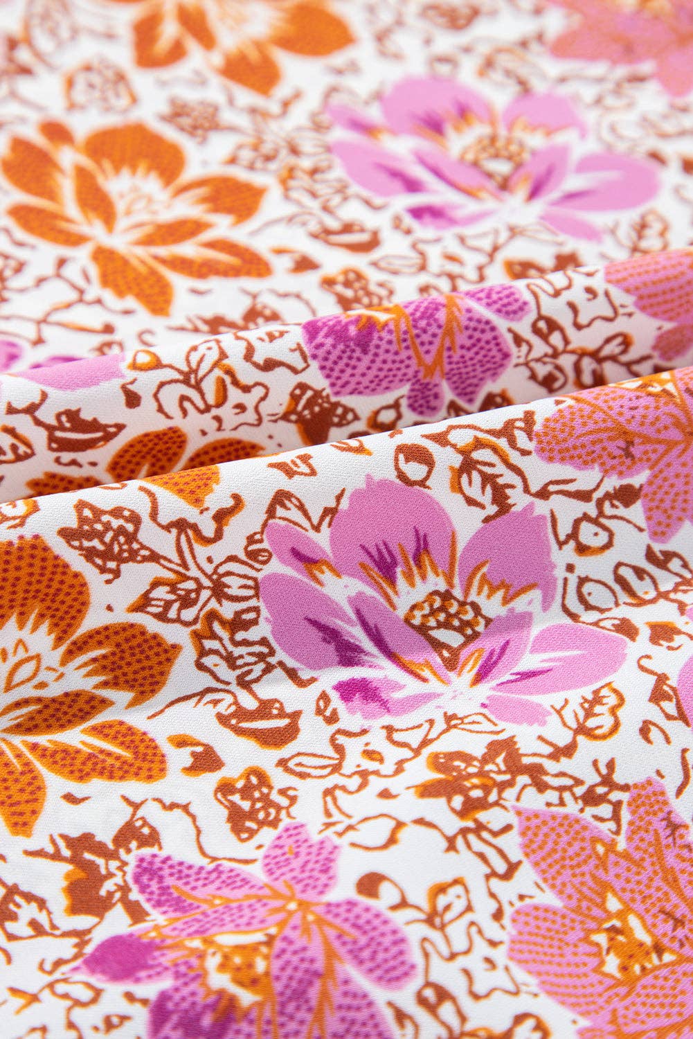 For a feminine and flowy silhouette, look no further than this must-have midi dress. Its shirred high-waist bodice and delicate frilly details make it perfect for any weather, while the square neckline, short sleeves, and knotted back closure add charming touches. Impress with your fashion sense in this darling floral number.