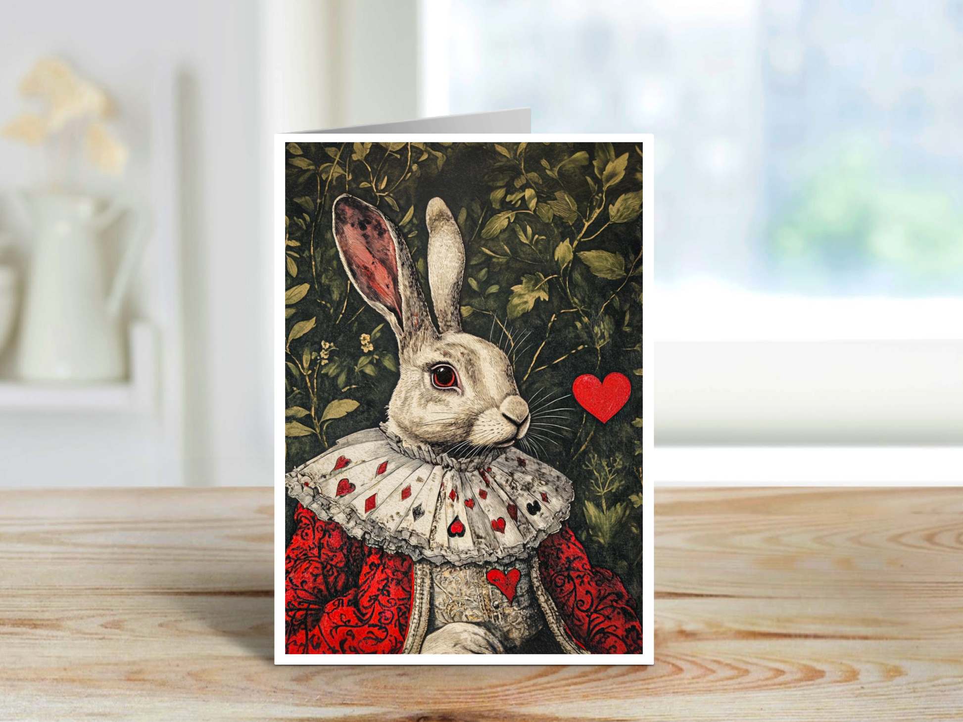 Step into a whimsical world of charm and mystery with Jack Harts, the most debonair bunny in the garden of hearts! With his regal playing-card ruff, luxurious red brocade coat, and a cheeky heart on his sleeve, Jack is ready to captivate anyone with his romantic flair.