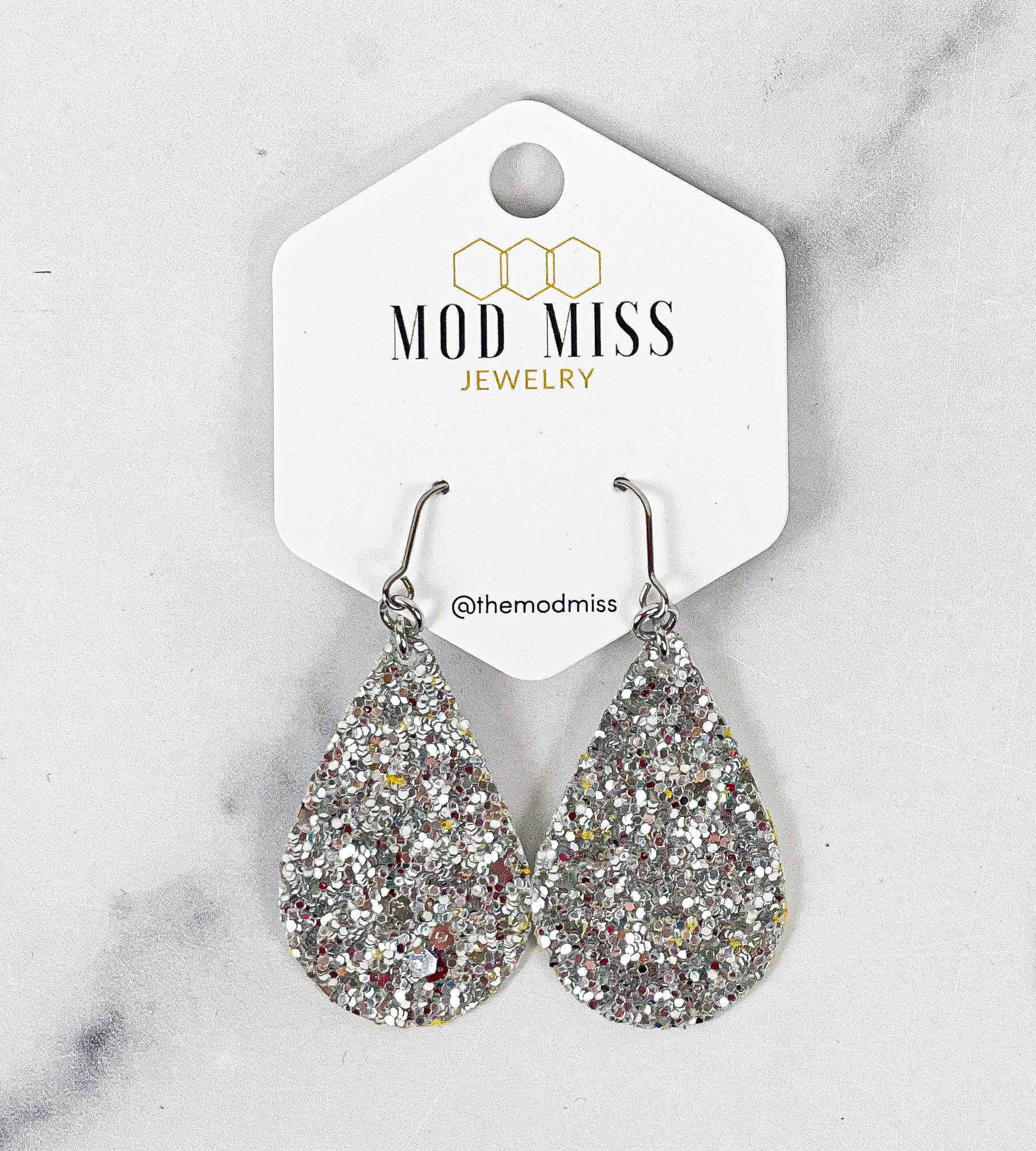 Our classic Teardrop Earring will accent your style perfectly while making a statement. Ultra-lightweight Glitter Canvas with Stainless Steel & Nickel Free Hooks. Sizes available: 1-inch or 2-inch Teardrop