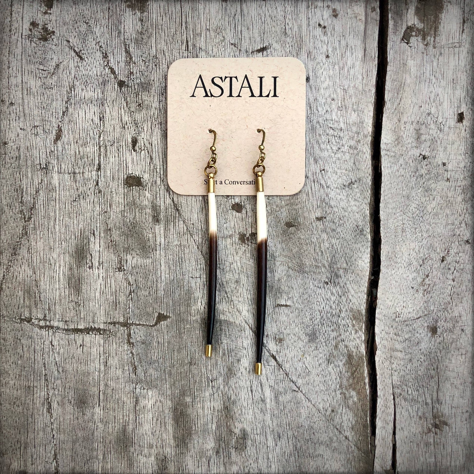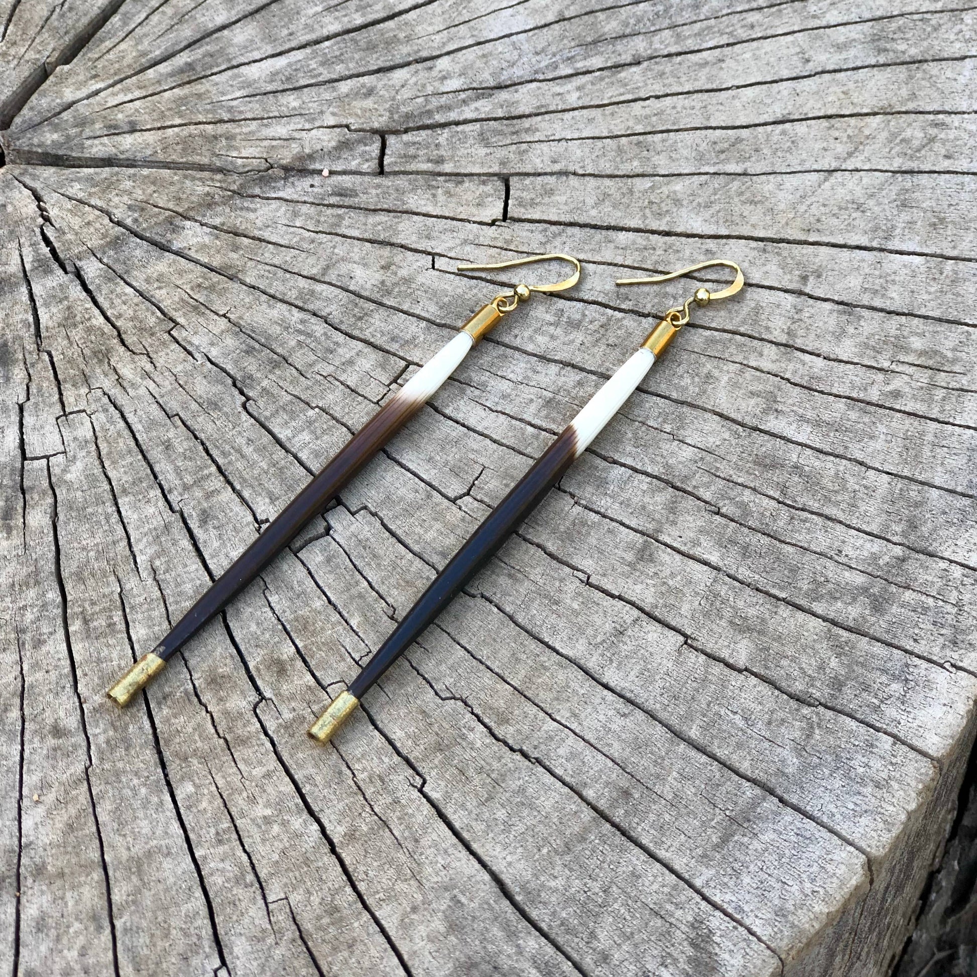 Porcupine Quill Earrings Black/Brown & Ivory, Brass