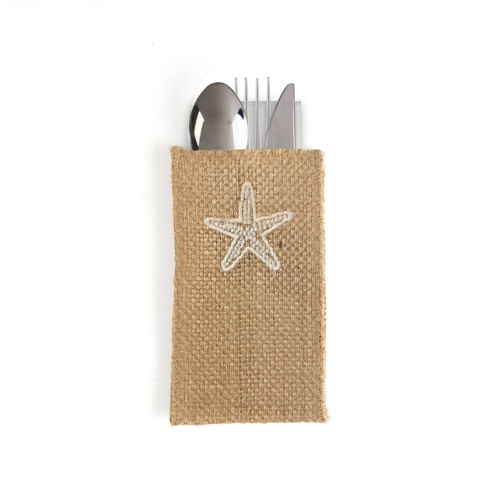 Set includes 8 woven jute pouches with a screen-printed starfish.