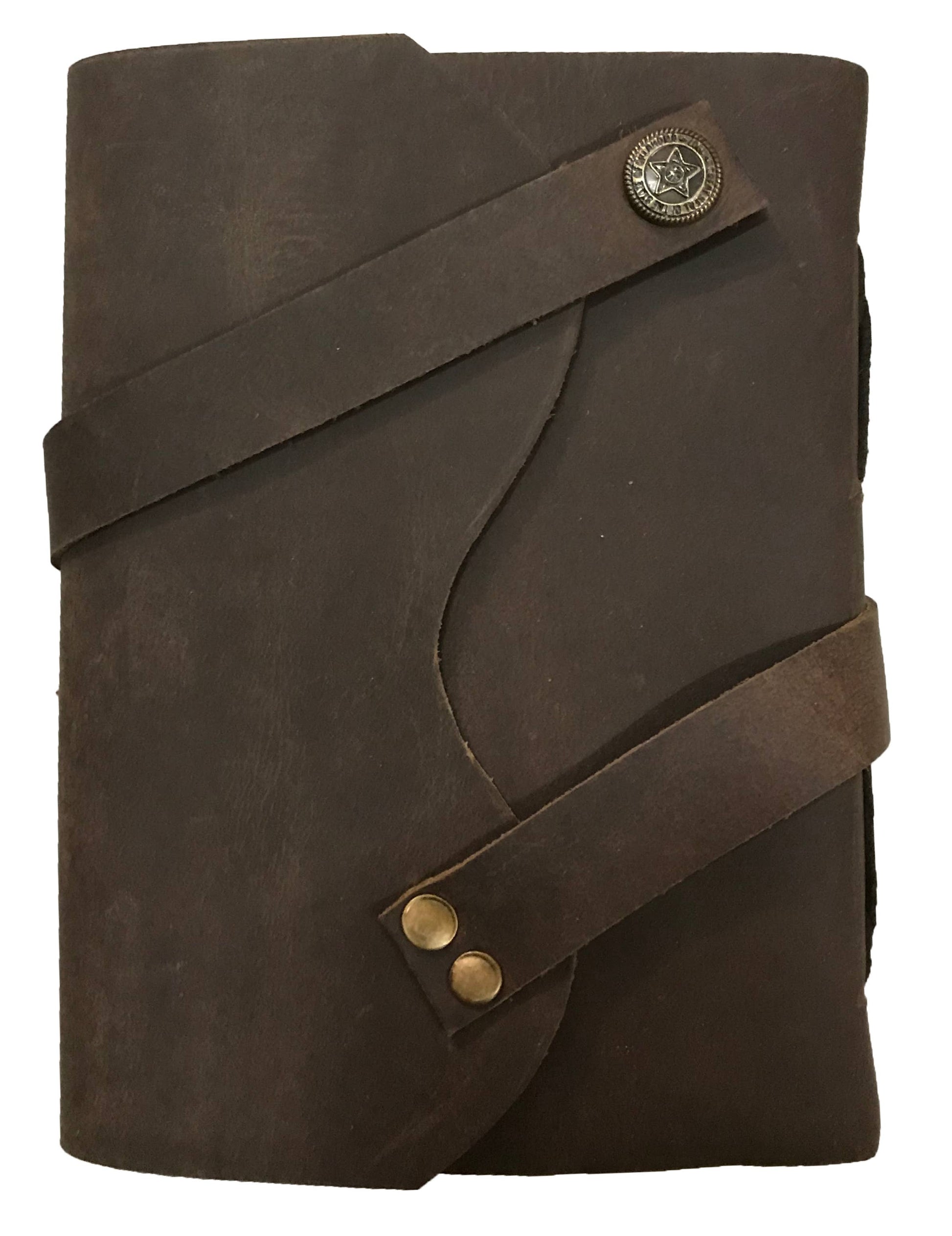 Might George Washington have used this style journal? We don't know but we like to think so. The Surveyor is made of very dark brown soft brushed leather and has a wrap around snap closure. It has approximately 200 pages of unlined recycled cotton paper. The journal often has impressions in it from the snaps so please do not order if that is an issue for you. We will no longer offer credit for this.