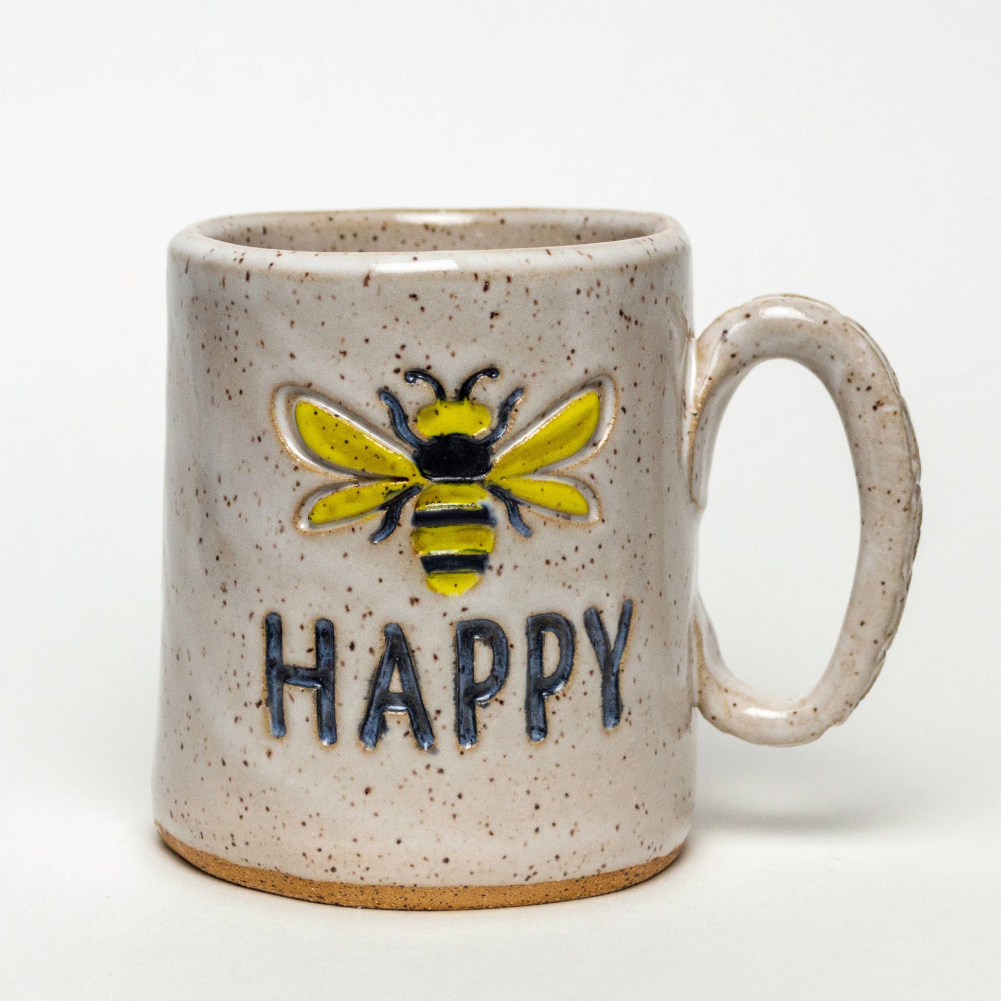 - Mug is hand-built and hand-glazed.